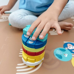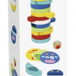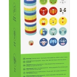 Ova zanimljiva obiteljska igra spaja balansiranje, razvrstavanje boja i upoznavanje životinjica. Toranj od šarenih drvenih blokova potiče na pažljivo izvlačenje i trenira koordinaciju oko–ruka, koncentraciju i suradnju djece. Idealan izbor za zajedničku igru braće, sestara i prijatelja.