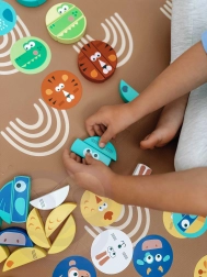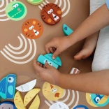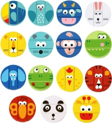 Dio seta su karte sa životinjama i šareni kocka koji određuju koji blok igrač treba izvući. Kvalitetna drvena izrada, glatki rubovi i ekološke, sigurne boje jamče ugodnu i sigurnu igru. Igra ujedno potiče učenje boja, brojanja i strpljenja.