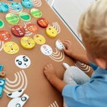 Karte i šareni kocka vode djecu prepoznavanju boja i imenovanju 15 različitih životinja. Zabavan način za razvoj rječnika i logike.
