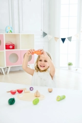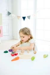 Igra s namirnicama potiče razvoj fine motorike, koordinacije oko–ruka, kreativnosti te prepoznavanja boja i oblika. Prirodni materijali i pažljiva izrada osiguravaju dugotrajnost i sigurnost pri svakodnevnoj igri.