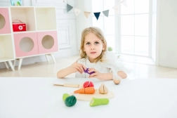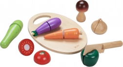 - Sadržaj seta: drveno povrće na čičak, daska, sigurni drveni nožić