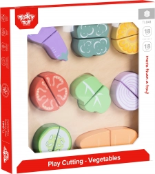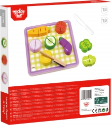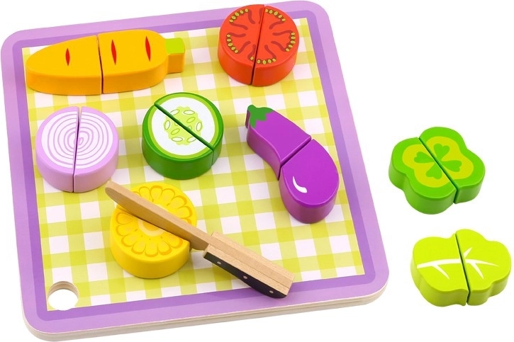 Drveno povrće na dasci za rezanje od Tooky Toya idealna je igračka za djecu od 18 mjeseci. Ovaj set sadrži raznolike, šarene komade povrća koje se mogu „rezati” drvenim nožem i ponovno spajati pomoću čička. Dizajniran je za razvoj motoričkih vještina i kreativne igre.