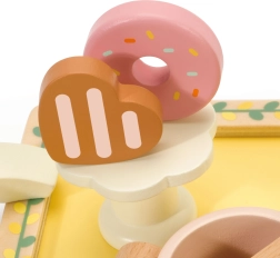 Drveni set za čaj i deserti Classic World idealni su za djecu koja žele sudjelovati u igri uloga. Set nudi očaravajuće pastelne boje i razne dodatke poput čajnika, šalica i deserta, čime potiče dječju maštu i kreativnost.
