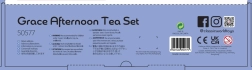 Set uključuje veliki poslužavnik, tanjuriće za šalice, čajnik, šalice, žličice i deserte.