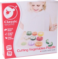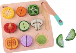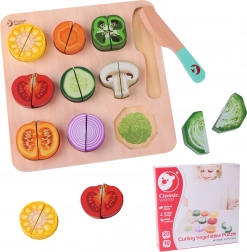 Ovaj set je savršen dodatak za igru uloga već od ranog doba i donosi ne samo zabavu već i obrazovnu vrijednost. Sadrži 20 različitih elemenata, uključujući obostranu dasku, nož i povrće. Igračka je namijenjena djeci od 18 mjeseci i izrađena je od lakiranog drva, obojena netoksičnim bojama, što osigurava njenu punu sigurnost.