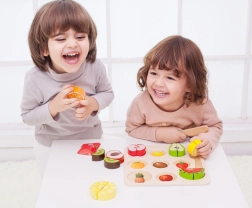Ovaj set pomaže djeci prepoznavati različite vrste voća i boja kroz igru.