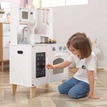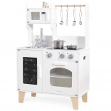 Ova drvena kuhinjica nudi realistične elemente kao što su pećnica, štednjak i mikrovalna, koji omogućuju sate zabavnog kuhanja.