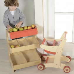 Uz ovu interaktivnu igračku, djeca uče osnovne principe kupovine, uključujući kontrolu svježine namirnica i plaćanje na blagajni. Igračka je izrađena od kvalitetnog drveta, što je prijateljski prema okolišu i podržava smanjenje plastičnog otpada.