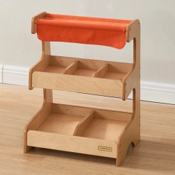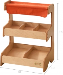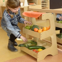 Drveni tržni štand Masterkidz s platnenim krovom nudi dvostruku konstrukciju za maksimalnu fleksibilnost. Na prvoj razini nalaze se tri komore, idealne za različite vrste proizvoda.