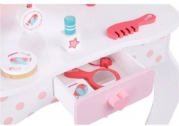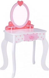 Dječji toaletni stolić marke Tooky Toy savršen je dodatak za svaku dječju sobu. Izrađen od kvalitetnog drveta i ukrašen bijelim i ružičastim detaljima, ovaj set ostvaruje san svake male princeze.