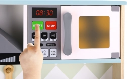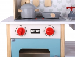 Ova prekrasna drvena kuhinja ima širok raspon funkcija, kao što su štednjak, pećnica, mikrovalna i ploča za crtanje, na koju djeca mogu crtati. Kuhinja je izrađena od visokokvalitetnih materijala i namijenjena je djeci od 3 godine.