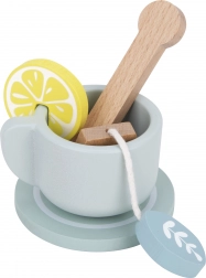 Čajni set je idealan za djecu koja vole igrati popodnevne čajne zabave. Sastavljena od visokokvalitetnog drva i sastoji se od raznobojnih komponenti koje privlače igru.