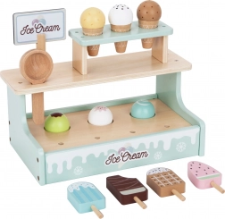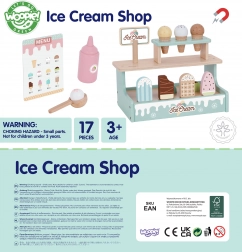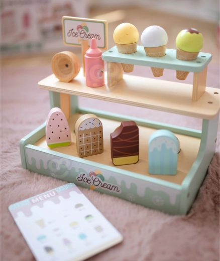 Dvokatni stalak, korneti, sladoledi na štapiću, žlica za serviranje i jelovnik pozivaju na realističnu uslugu i razvijaju socijalne vještine.