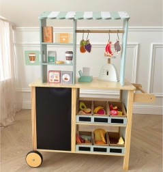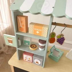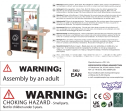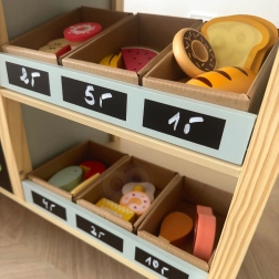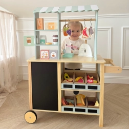 Drvena trgovina WOOPIE GREEN je idealna igračka za djecu koja se uče socijalnim, matematičkim i organizacijskim vještinama kroz igru uloga. Sadrži 73 elementa, uključujući vage, prehrambene proizvode, čitače kartica i ploču za kredu za bilješke. Sve je izrađeno od sigurnog drva i obojano netoksičnim bojama.