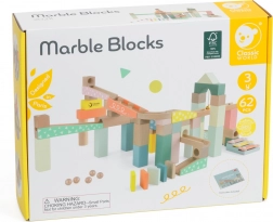 Drveni set za izgradnju staze za kuglice brenda Classic World prikladan je za djecu od 3 godine. Igračka sadrži 62 komada različito oblikovanih i velikih blokova koji nude beskrajne mogućnosti slaganja kreativnih staza. Pastelne boje i netoksični premazi osiguravaju sigurnost i estetski izgled igračke.