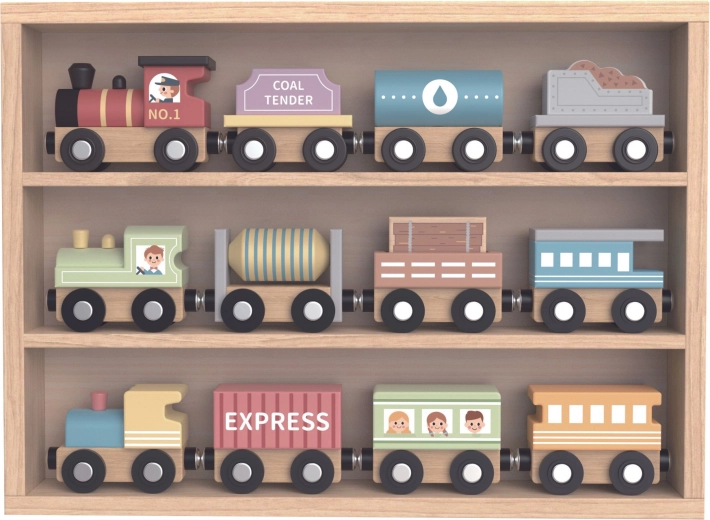 Set drvenih vlakova i vagona marke Tooky Toy nudi ne samo sate zabave, već također podupire razvoj kreativnosti i motoričkih vještina. Zahvaljujući magnetskim spojnicama djeca lako mogu mijenjati sastav vlakova i prevoziti ugljen, benzin ili putnike. Svaki dio je precizno izrađen od kvalitetnog drva i obojan netoksičnim bojama koje su sigurne za djecu.