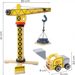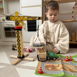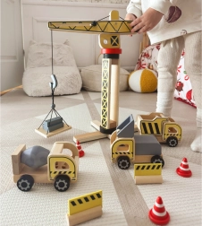 Prošireni građevinski set marke WOOPIE GREEN namijenjen je malim graditeljima. Ovaj set sadrži veliku drvenu dizalica, tri građevinska vozila i dodatnu opremu za realistične igre gradnje.