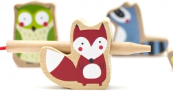 Otkrijte kreativnu igru koja istodobno zabavlja i uči. Djeca provlače šarene dijelove s motivima ježa, sove, gljivica i češera na čvrstu uzicu te pritom razvijaju finu motoriku, strpljenje i logičko razmišljanje. Drveni elementi ugodni su za držanje i izdržat će svakodnevnu igru.