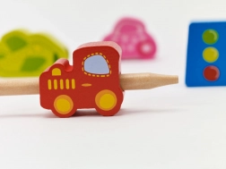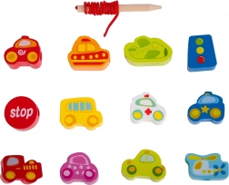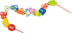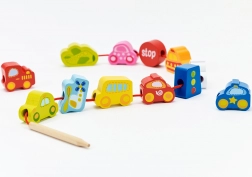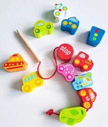 Otkrijte pametnu igračku koja spaja učenje i zabavu. Drvene perlice u obliku autića, autobusa, aviona i prometnih znakova lako se nižu na uzicu s drvenim završetkom. Djeca kroz igru vježbaju finu motoriku, preciznost pokreta te prepoznavanje boja i oblika.