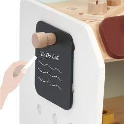 Kvalitetna izrada od čvrstog drva s glatkim rubovima osigurava sigurnu igru. Sa strane su rupe za pričvršćivanje dijelova, što proširuje mogućnosti gradnje i maštovite igre. Mini radni stol zahvaljujući svojoj veličini izvrsno pristaje u dječju sobu i na putovanja.