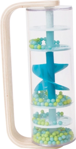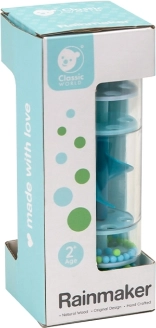 Umirujuća glazbena igračka za najmlađe: plava kišna palica od CLASSIC WORLD kombinira drvo i prozirnu plastiku, u unutrašnjosti se prelijevaju šarene kuglice i stvaraju nježan zvuk kiše. Dovoljno ju je protresti ili okrenuti za 360° i odmah se pretvara u zabavnu zvečku idealnu za senzorni razvoj i prva ritmička vježbanja.
