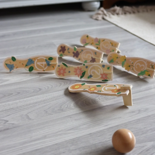 Zabavan set drvenih kegli CLASSIC WORLD donosi djeci od 18 mjeseci mnogo radosti i učenja. Sadrži 6 numeriranih kegli s cvjetnim motivom, drvenu lopticu i praktičnu platnenu vrećicu za spremanje. I... Prikaži više