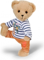 Pružite svojoj lutki ili medvjediću novi svježi outfit koji priziva ljeto i bezbrižno raspoloženje. Prugastu majicu s tiskom palme i sunca nadopunjuju narančaste hlače s udobnim pojasom. Set je izrađen od ugodnih tkanina kako bi oblačenje i igra bili maksimalno udobni.