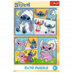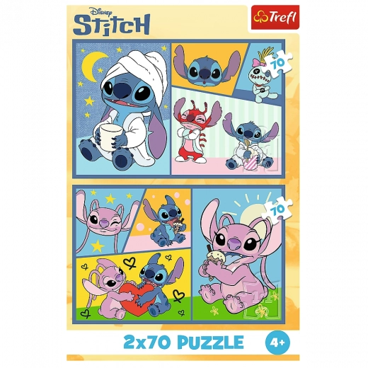 Set puzzle 2x70 dijelova nudi dva jedinstvena slaganja u jednom pakiranju, što osigurava dvostruku zabavu. Zahvaljujući ovom setu, djeca mogu otkriti svijet Lila i Stitchea i stvarati slike junaka njihove omiljene priče.