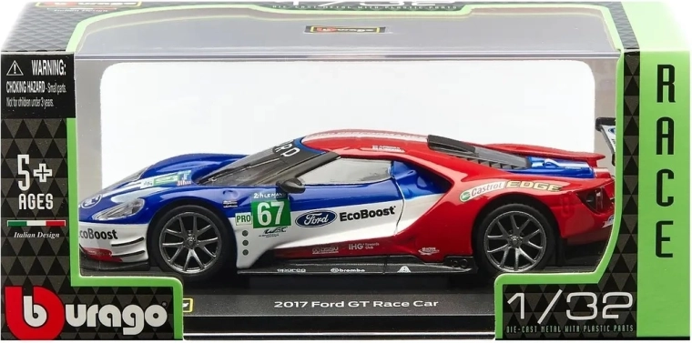 Model u mjerilu 1:32 dug je približno 13 cm i ističe se plavom metalik bojom, velikim stražnjim krilom, difuzorom i realističnim elementima poput retrovizora, kočnih detalja i startnih trkaćih brojeva. Odličan izbor za obožavatelje marke FORD, utrka izdržljivosti i kolekcionare modela automobila.