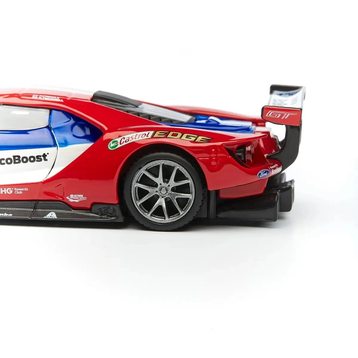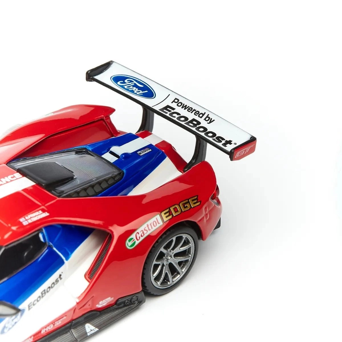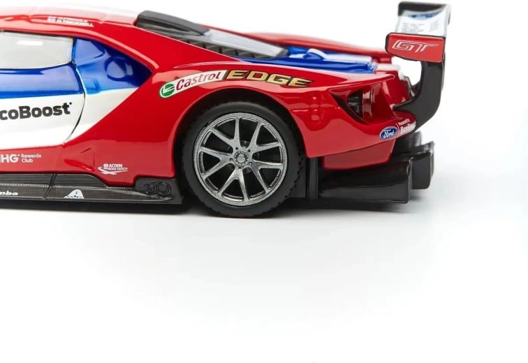 Veliko stražnje krilo, difuzor i prednji splitter vjerno prate pravi trkaći specijal FORD GT za maksimalnu autentičnost.