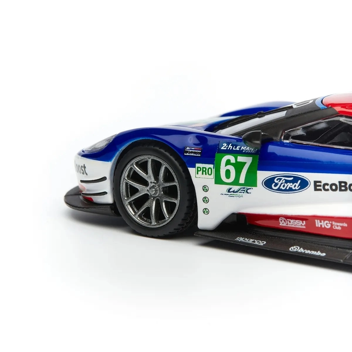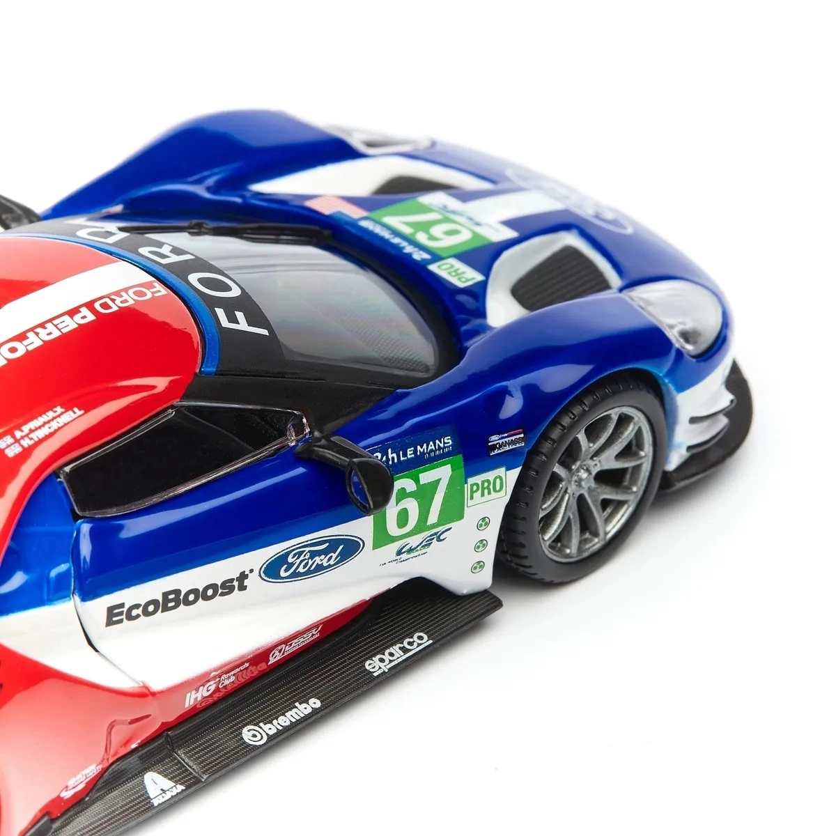 Originalni otisci FORD, EcoBoost i startni broj 67 daju modelu trkaći karakter koji dolazi do izražaja u vitrini i na fotografijama.