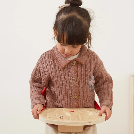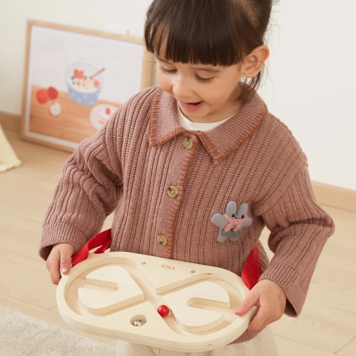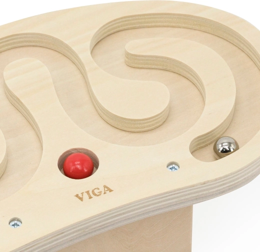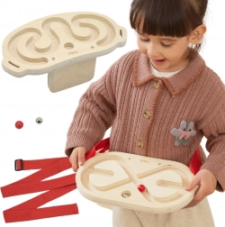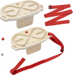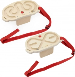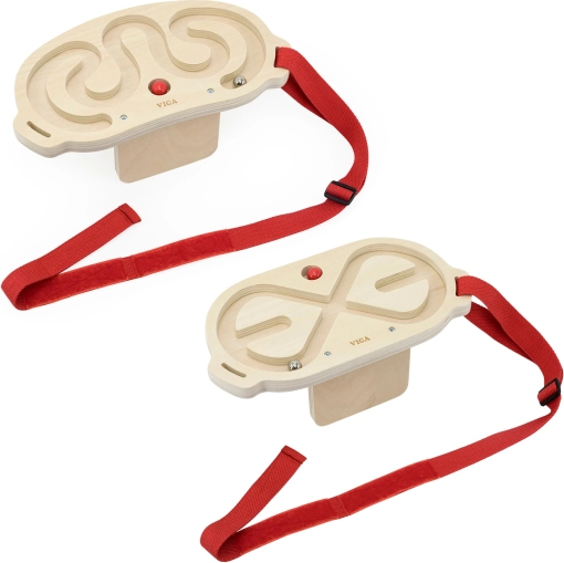 Set sadrži dva kvalitetna drvena labirinta s glatkom površinom i dvije kuglice – lakšu drvenu i težu metalnu – za različite razine težine. Zahvaljujući podesivim remenima (46–95 cm) moguće je pričvrstiti labirint na različite dijelove tijela te trenirati ravnotežu i preciznost pokreta.