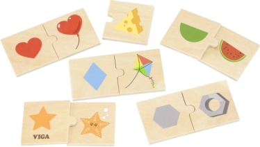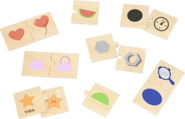 Otkrijte pametne drvene puzzle VIGA koje spajaju zabavu i učenje. Djeca slažu parove sličica i njihovih “sjena”, čime prirodno uvježbavaju prepoznavanje oblika, finu motoriku i koncentraciju. Šarene ilustracije osvajaju na prvi pogled te potiču razvoj rječnika i ranu logiku.
