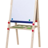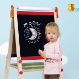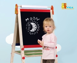 Ova kvalitetna drvena ploča za crtanje Viga nudi dvije velike površine za beskrajnu zabavu i učenje – crnu ploču za crtanje kredom i bijelu magnetsku ploču za marker za brisanje. Stabilna konstrukcija osigurava sigurnu upotrebu kod kuće i u dječjoj sobi.