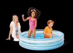 Plavi nafukavajući dječji bazen pružit će djeci ugodno osvježenje tijekom vrućih dana. Stabilna konstrukcija od tri nafukavajuća prstena osigurava čvrstoću i mekane rubove, dok je podloga od omekšanog PVC-a ugodna na dodir i smanjuje klizanje.