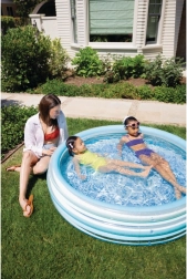 Razveselite djecu ljetnim igrama u vodi! Ovaj nafukavajući bazen promjera 147 cm i visine 33 cm nudi sigurno plitko kupalište za male ljubitelje vode od 2 godine. Zahvaljujući trima zračnim komorama, omekšanoj protukliznoj podlozi i jednostavnoj instalaciji idealan je za vrt i dvorište.