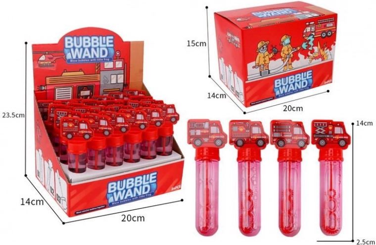 Otkrijte svijet mjehurića s Mjehurićima Vatrogasno Vozilo veličine 14 cm, koji su idealni za dječje igre i uljepšavanje dječjeg dana. Svaka bočica dimenzija 2,5x2,5x14 cm nudi beskrajne mogućnosti mjehurićaste zabave.