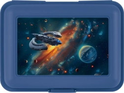 Ova plastična kutija za užinu s motivom svemira idealan je izbor za čuvanje užina vaše djece sigurno i organizirano.
