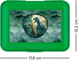 Plastična kutija za užinu s motivom dinosaura nije samo funkcionalna, već i stylish. S klasičnim kopčastim zatvaranjem, vaša hrana ostaje sigurno unutra. Pregrada omogućuje jednostavnu organizaciju i odvajanje hrane.