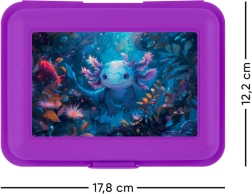 Elegantna ljubičasta kutija s motivom aksolotla dodaje vašoj hrani razigran izgled.
