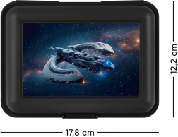 Kutija za užinu s motivom svemirskog broda je ovdje za sve ljubitelje svemira. Ova crna kutija nije samo stilizirana, već i praktična:
