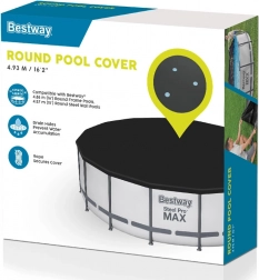 Univerzalni pokrivač Bestway savršena je zaštita za vaš bazen s konstrukcijom promjera 488 cm ili Hydrium tipa 460 cm. Ovaj pokrivač štiti bazen od insekata, ptica, lišća i lagane kiše te također dodaje toplinsku izolaciju.