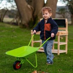 Zahvaljujući ergonomskom dizajnu s dvjema ručkama i čvrstim gumenim kotačem, kolica su lako upravljiva čak i za malu djecu.