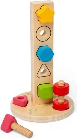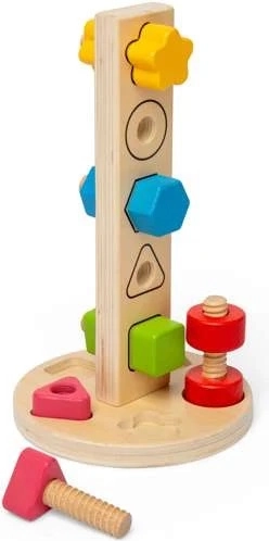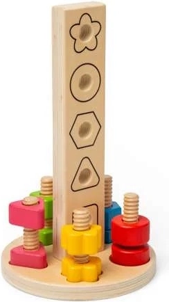 Vijčanje i nanižanje oblika na klin jača prste, zapešća i koordinaciju ruka–oko. Idealno za prve motoričke vještine.
