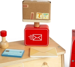 Doživite sve što se događa na pošti s ovim fascinantnim setom za djecu od 3 godine. Set sadrži poštanski sandučić, kasu, vagu, vreću za pakete, pakete, pisma i mnogo drugih stvari koje mali poštari trebaju za svoj rad. Svaki dio je izrađen od održivog FSC® certificiranog drva i obojen je netoksičnim bojama.