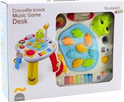 - Klavirić sa zvukovima životinja; igra spretnosti s čekićem; zvučni i svjetlosni efekti; interaktivna glava krokodila