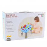 Interaktivni vodeni stolić pretvara svako poslijepodne u mali vodeni svijet. Zahvaljujući ugrađenom kruženju vode pokreću se vodeni mlinovi, aktiviraju se fontanice i ožive plivajuće životinjice koje djeca mogu štapom za pecanje loviti. Zabavni zvučni efekti i gumbi potiču znatiželju i aktivno istraživanje.