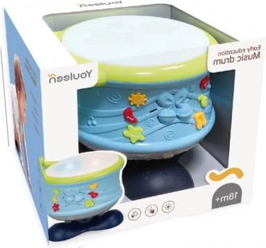 Zahvaljujući praktičnoj ručki bubanj je lako prenosiv – idealan za dom i putovanja. Tipke koje pokreću različite melodije potiču slušno opažanje i razvoj ritma, dok manipulacija igračkom poboljšava finu motoriku i koordinaciju.