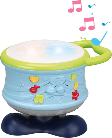 Presladak interaktivni bubanj za najmlađe spaja glazbu, pokret i svjetlo u jednu igračku koja potiče senzorni i motorički razvoj. Zahvaljujući LED pozadinskom osvjetljenju, veseloj glazbi i rotirajućoj konstrukciji, djeca prirodno usvajaju prve ritmove i vježbaju koordinaciju ruku i očiju.