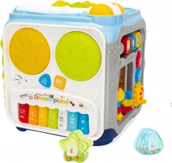 Ova interaktivna kocka aktivnosti osmišljena je za razvoj osjetilne percepcije, fine i grube motorike te logičkog razmišljanja djece. Zahvaljujući raznolikom spektru funkcija potiče istraživanje, podržava koncentraciju i koordinaciju oko–ruka te motivira na samostalnu i zajedničku igru.